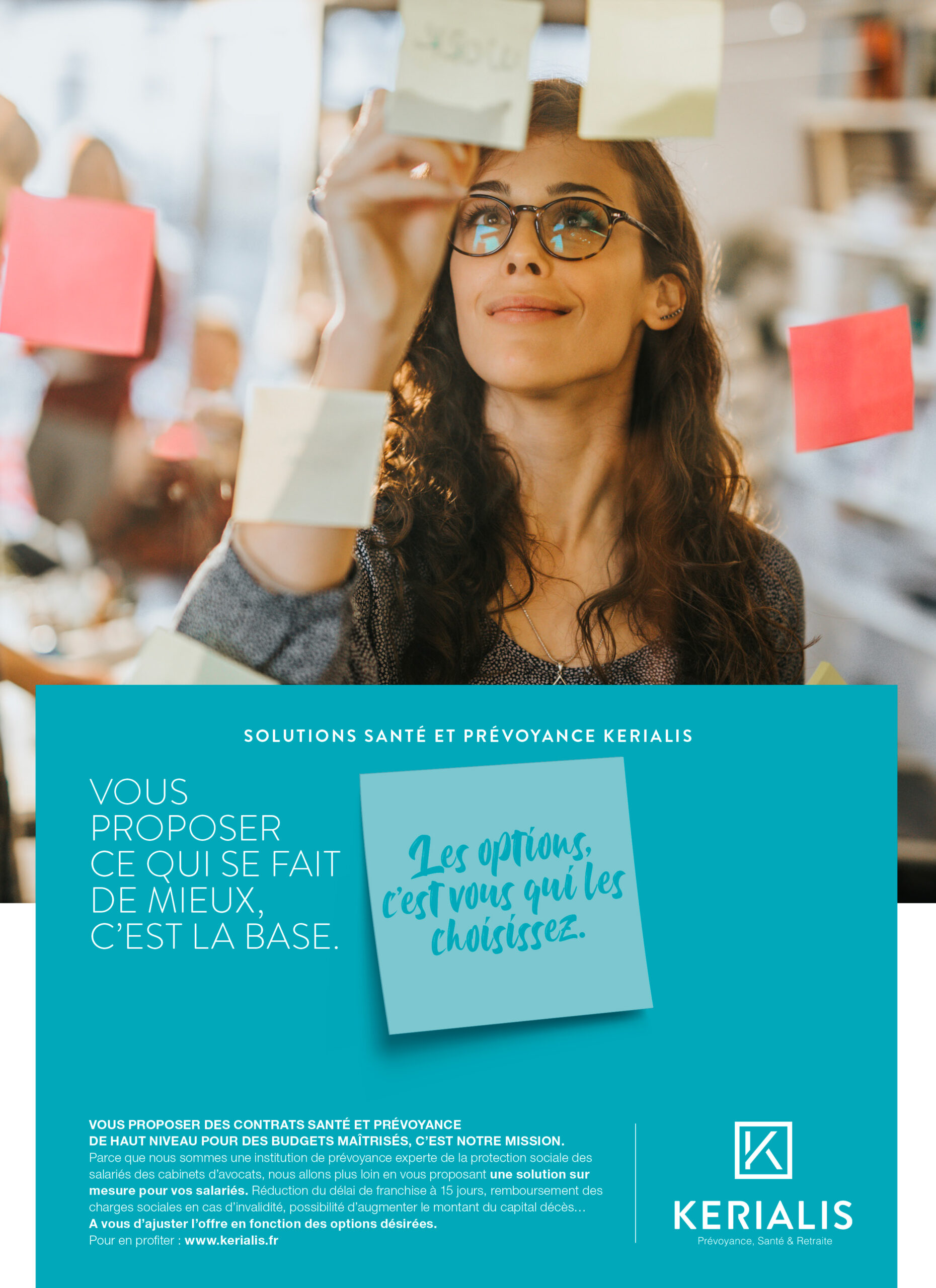 Nous avons élaboré une campagne B to B en collaboration avec Kerialis, une assurance et prévoyance destinée aux employés des cabinets d'avocats. Notre concept repose sur une idée visuelle astucieuse : en recadrant la partie inférieure de la lettre K, elle évoque la forme d'un toit de maison. Cette représentation symbolise la protection et la tranquillité d'esprit que procure une assurance solide, confirmant ainsi que nous sommes effectivement bien couverts !